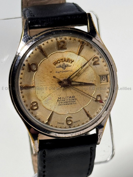 • Rotary - Relógio Militar Automatic - Não funciona - 33mm. Atenção! Os Relógios estão no estado de conservação USADO e não NOVO, portanto podem precisar de revisão ou restauro e podem conter vícios ou defeitos ocultos não mencionados na descrição ou fotos, o funcionamento descrito é apenas sobre a função relógio, questione todas suas dúvidas antes de efetuar os lances, eles são IRREVOGÁVEIS e IRRETRATÁVEIS! Leia os Termos e Condições e a caixa de informações do leilão em Home no site GOLD.LEL.BR dando ênfase nas Informações Importantes, ao efetuar o lance o arrematante concorda com Datas, Prazos e Regras da casa de leilões É Old but Gold. MUITA ATENÇÃO AS FOTOS, solicitações de mais fotos ou dúvidas devem ser enviadas pelo Whatsapp 11 9 8877 2582.