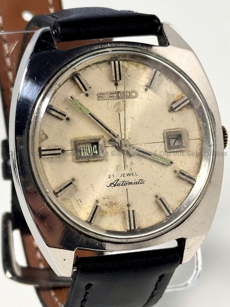 • Seiko - Relógio 5 Automatic - 6119 8090 - Não funciona -  38mm. Atenção! Os Relógios estão no estado de conservação USADO e não NOVO, portanto podem precisar de revisão ou restauro e podem conter vícios ou defeitos ocultos não mencionados na descrição ou fotos, o funcionamento descrito é apenas sobre a função relógio, questione todas suas dúvidas antes de efetuar os lances, eles são IRREVOGÁVEIS e IRRETRATÁVEIS! Leia os Termos e Condições e a caixa de informações do leilão em Home no site GOLD.LEL.BR dando ênfase nas Informações Importantes, ao efetuar o lance o arrematante concorda com Datas, Prazos e Regras da casa de leilões É Old but Gold. MUITA ATENÇÃO AS FOTOS, solicitações de mais fotos ou dúvidas devem ser enviadas pelo Whatsapp 11 9 8877 2582.