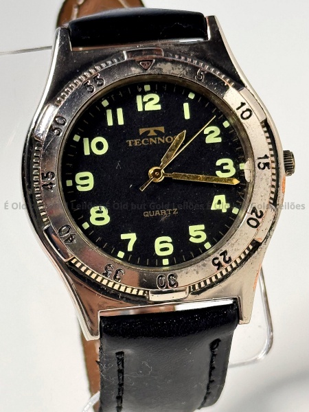 • Tecnnos - Relógio - Funcionando - 35mm. Atenção! Os Relógios estão no estado de conservação USADO e não NOVO, portanto podem precisar de revisão ou restauro e podem conter vícios ou defeitos ocultos não mencionados na descrição ou fotos, o funcionamento descrito é apenas sobre a função relógio, questione todas suas dúvidas antes de efetuar os lances, eles são IRREVOGÁVEIS e IRRETRATÁVEIS! Leia os Termos e Condições e a caixa de informações do leilão em Home no site GOLD.LEL.BR dando ênfase nas Informações Importantes, ao efetuar o lance o arrematante concorda com Datas, Prazos e Regras da casa de leilões É Old but Gold. MUITA ATENÇÃO AS FOTOS, solicitações de mais fotos ou dúvidas devem ser enviadas pelo Whatsapp 11 9 8877 2582.