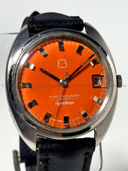 • Ecole D Horlogerie - Relógio  Dynotron - Não funciona - 37mm. Atenção! Os Relógios estão no estado de conservação USADO e não NOVO, portanto podem precisar de revisão ou restauro e podem conter vícios ou defeitos ocultos não mencionados na descrição ou fotos, o funcionamento descrito é apenas sobre a função relógio, questione todas suas dúvidas antes de efetuar os lances, eles são IRREVOGÁVEIS e IRRETRATÁVEIS! Leia os Termos e Condições e a caixa de informações do leilão em Home no site GOLD.LEL.BR dando ênfase nas Informações Importantes, ao efetuar o lance o arrematante concorda com Datas, Prazos e Regras da casa de leilões É Old but Gold. MUITA ATENÇÃO AS FOTOS, solicitações de mais fotos ou dúvidas devem ser enviadas pelo Whatsapp 11 9 8877 2582.